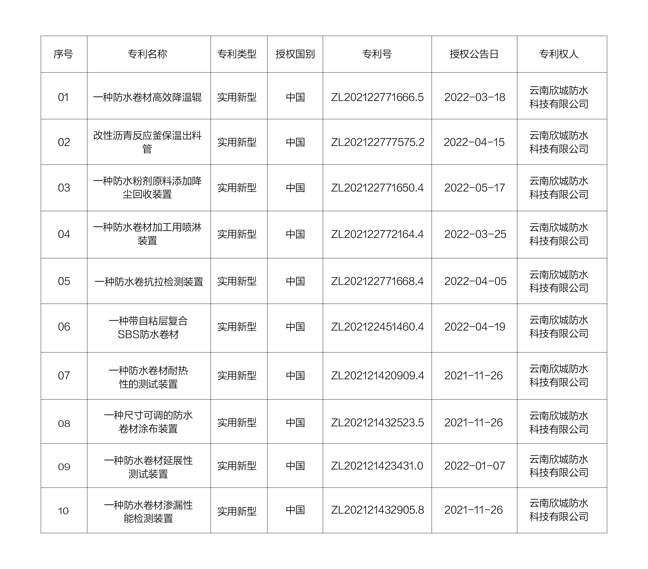 欣城牌“一种防水卷材高效降温辊”被国家知识产权局授予"实用新型专利权