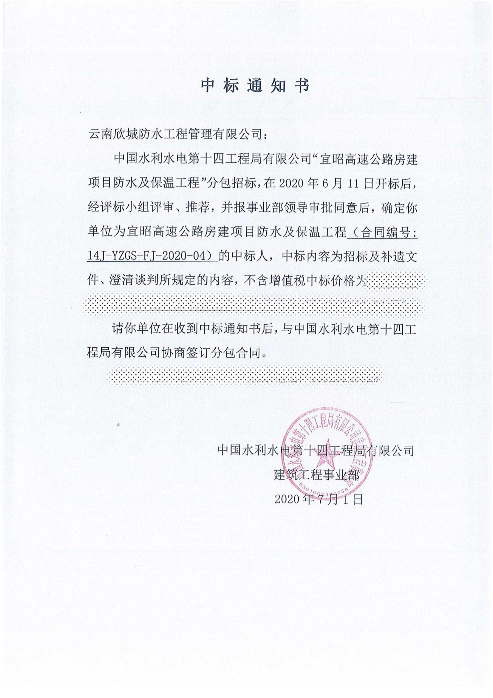 欣城中标宜昭高速公路房建项目防水及保温工程