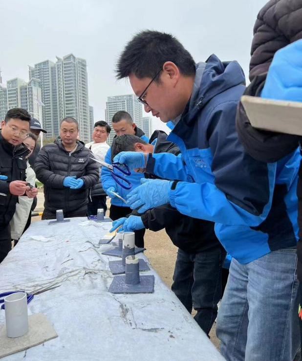 为赋能公司业务成长和产品服务,培育专业施工技术中坚力量,与长期同行者共创共享,2023年2月25日,由云南欣城防水科技有限公司(下简称欣城防水)、中核北研防水科技(云南)有限公司(下简称中核北研)、昆明固瑞固防水科技有限公司(下简称固瑞固)联合举办的“现凝卷材施工”专项培训活动正式在中交上航局(昆明巫家坝)项目部会议室举行。本次培训活动为期一天,共分为理论学习和实操演练两个环节。中核北研总经理睢小军、研发负责人刘征征、欣城专家顾问、云南省防水防腐保温协会专委会主任刘光宗、固瑞固总经理李华等公司领导出席了会议并分别对学员进行动员和理论、实操的培训。三家企业代表、技术骨干、防水从业人员共50余人参加了本次培训。