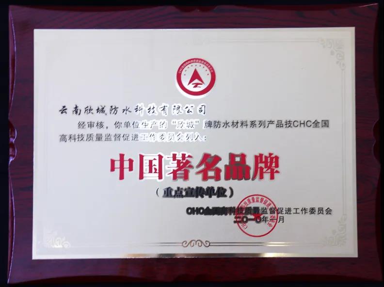 云南欣城防水科技有限公司始建于2005年,是一家集防水、堵漏、保温、防腐、装饰材料研发、生产、销售和防水施工服务于一体的综合性科技型企业。欣城是通过原铁道部认证的铁路防水企业,作为国内防水行业20强,被授予“云南省著名商标”、“中国建筑防水行业著名品牌”、“中国建筑防水行业十大领军企业”,“中国优秀民营科技企业”和“最具影响力品牌企业”等荣誉称号。